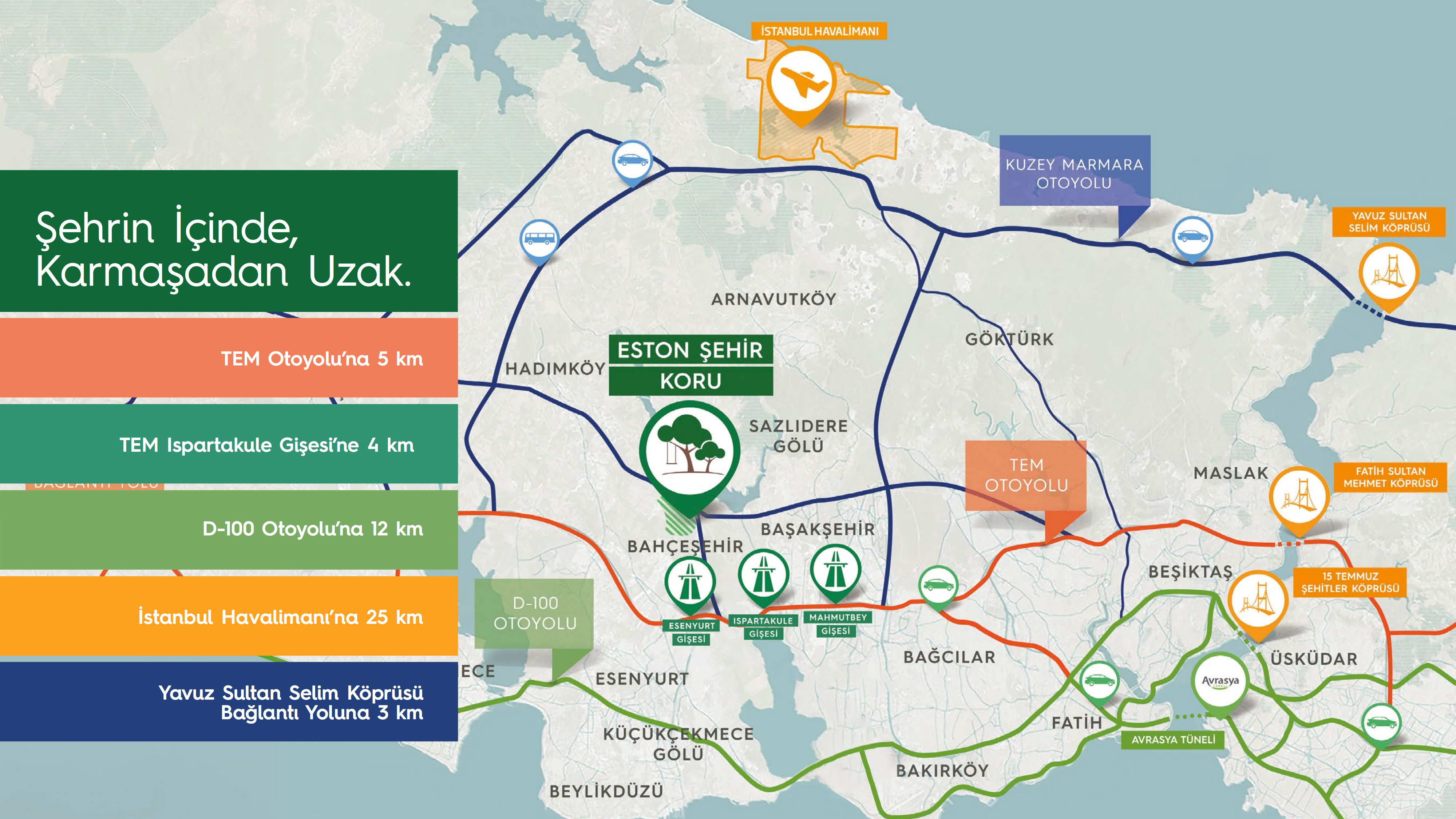 - TEM Otoyolu’na 5 km